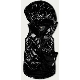 Lesklá čierna vesta s kapucňou (7005BIG)