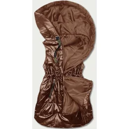 Lesklá vesta s kapucňou v karamelovej farbe (B8131-14)