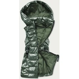 Lesklá zelená dámska vesta s kapucňou (B8019-10)