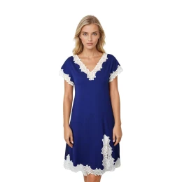Koszula nocna First Lady Livia to elegancka i niezwykle kobieca propozycja dla kobiet ceniących komfort oraz subtelny, zmysłowy styl. Wykonana z wysokiej jakości wiskozy z dodatkiem elastanu, doskonale dopasowuje się do sylwetki, zapewniając miękkość, elastyczność i przewiewność przez całą noc. Model posiada klasyczny dekolt w kształcie litery V, który pięknie podkreśla linię szyi i optycznie wysmukla sylwetkę. Krótki rękaw sprawia, że koszula jest idealna zarówno na cieplejsze noce, jak i do noszenia przez cały rok. Dekolt, rękawy oraz efektowny rozporek zostały wykończone delikatną koronką o kwiatowym princie, która nadaje całości romantycznego charakteru i subtelnej elegancji. Koszulka nocna First Lady Livia łączy w sobie wygodę codziennego użytkowania z wyjątkowym, stylowym wykończeniem, dzięki czemu sprawdzi się zarówno jako praktyczna bielizna nocna, jak i zmysłowa propozycja na wyjątkowe chwile.
