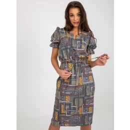 Khaki midi šaty s potlačou a krátkymi rukávmi.