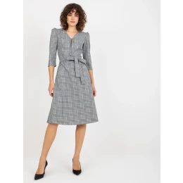 Bielo-čierne kockované midi koktejlové šaty s opaskom.