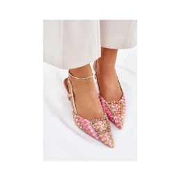 Dámske lodičky s odhaleným podpätkom, ktoré zaujmú svojím vzhľadom. Model so špicatou špičkou opticky predlžuje nohy a zdobenie v prednej časti im dodáva osobitý šarm. Zapínanie s nastaviteľným remienkom na pracku zaručuje pohodlie a skvelé nosenie. Ideálna voľba na večerné vychádzky a výnimočné príležitosti.