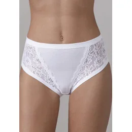 Dámske nohavičky vyššieho strihu od značky Lovelygirl. Nohavičky sú vyrobené z bavlny a elastanu. Predná časť je kombinovaná s elastickou čipkou s jemným kvetinovým vzorom. Balenie obsahuje dvoje biele nohavičky a jedny v červenej farbe.