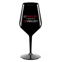 LOVÍNKUJEM A POTOM NA TO HOVÍNKUJEM - čierny nerozbitný pohár na víno 470 ml