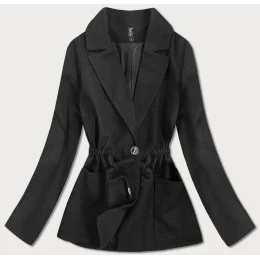 Krátky čierny voľný dámsky kabát (2727)