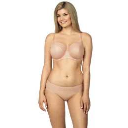 Podprsenka značky Lupo, model 140, s drôtmi, ktoré podporujú a tvarujú prsia. zvislé kostice na bokoch. nastaviteľné ramienka, neodnímateľné. kovové háčiky na ramienkach. zapínanie na háčiky a očká. zapínanie: na chrbte. dva rady zvislých háčikov. tri úrovne vodorovných háčikov. výrobok je vyrobený z 85 % polyamidu, 15 % elastanu. dámsky výrobok. vlastnosti výrobku: klasický mäkký materiál so sieťovinou. boky vystužené látkou.