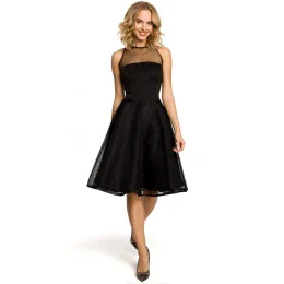 M148 Večerné šaty ku kolenám so sieťovaným sedlom - čierne