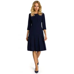 M336 Šaty so spadnutým pásom a záhyby - tmavo modré