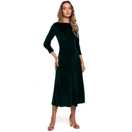 M557 Zamatové midi šaty s naberanými rukávmi - zelené
