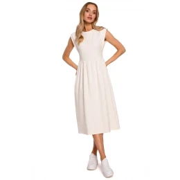 M581 Šaty bez rukávov s vysokým pásom - krémové