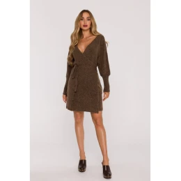 M631 Zavinovacie svetrové šaty so zaväzovaním - karamelové