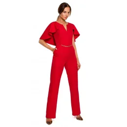 95% polyester 5% elastan Tento jednodielny overal s efektom peleríny na chrbte a reťazou vpredu určite upúta pozornosť.INFORMÁCIE O PRODUKTE: Tkaná textília Jednodielny overal s efektom peleríny Rozdelený výstrih Rovné nohy Ozdobná reťaz v páse Skryté zapínanie na zips na zadnej strane Bočné vrecká Náš model meria 171 cm a nosí veľkosť S