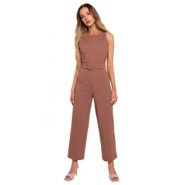 M679 Overal bez rukávov s opaskom a sponou - čokoládový