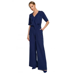 95% polyester 5% elastan Predstavte si rýchly a dokonalý outfit - presne taký je náš široký overal s ozdobnou klopou v tvare písmena V. INFORMÁCIE O VÝROBKU: Tkaná tkanina jednodielny overal so zavinovacou prednou časťou so zapínaním na patentku a ozdobnou klopou krátke rukávy široké nohy so záhybmi v páse predné šikmé vrecká skryté bočné zapínanie na zips bez podšívky Náš model je vysoký 171 cm a nosí veľkosť S