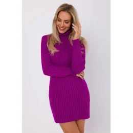M770 Svetrové šaty s vysokým golierom - fialové