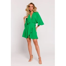 95 % polyester 5 % elastan INFORMÁCIE O PRODUKTE: tkaná krepová látka mini šaty s viazaním pri výstrihu nariasenie vpredu s volánom krátke elastické rukávy skrytý zadný zips bez podšívky naša modelka má 171 cm a nosí veľkosť S navrhnuté a vyrobené v Poľsku
