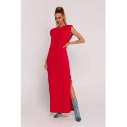 M790 Maxi šaty s ramennými vypchávkami - červené