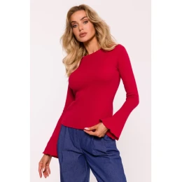 M806 Rebrovaný top s dlhými rukávmi - červený