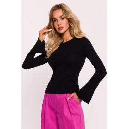 M806 Rebrovaný top s dlhými rukávmi - čierny
