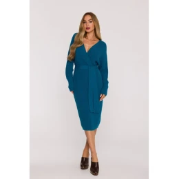 M810 Svetrové šaty s výstrihom do V - oceánsky modré