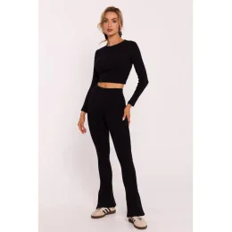 M816 Rebrované legíny s rozdelenou nohavicou - čierne