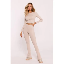 M816 Rebrované legíny s rozdelenou nohavicou - pieskové