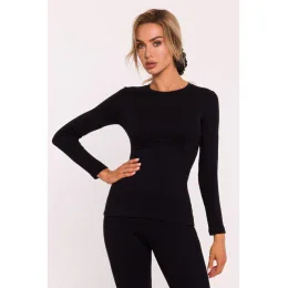 M817 Rebrovaný korzetový top s dlhými rukávmi - čierny