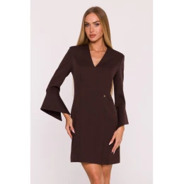 M876 Šaty so širokými manžetami - hnedé