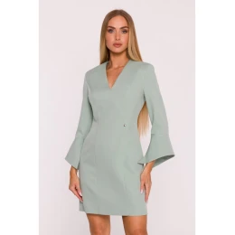 95% polyester 5% elastan MATERIÁL Tkanina: Hladká tkaná tkanina s matným povrchom PODROBNOSTI O VÝROBE Výstrih: výstrih do V Rukávy: dĺžka 7/8, mierne rozšírené na manžetách Zapínanie: skrytý zips na chrbte Vrecká: žiadne Podšívka: žiadna Detail: kovový štítok s logom v páse Model: M876 Navrhnutý a vyrobený v Poľsku Model na fotografii má 171 cm a nosí veľkosť S STYLE AND CUT Strih: rovný, mierne vypasovaný Tvar: mierne vypasovaný na ramenách, voľný smerom k lemu Dĺžka: mini