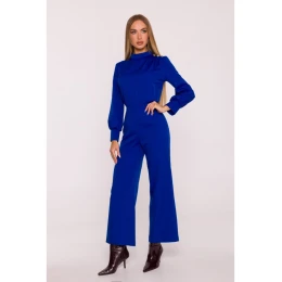 materiál: 95% polyester 5% elastan Látka: hladká tkanina s matným povrchom PODROBNOSTI O PRODUKTE Výstrih: stojačik s jemným nariasením na ramenách Rukávy: dlhé, zakončené širokými manžetami s rozparkom Zapínanie: skrytý zips na chrbte Vrecká: žiadne Nohavice: široké, 7/8 dĺžka Podšívka: žiadna Detaily: ozdobné gombíky na ramene Vzor: jednofarebný Model: M879 Navrhnutý a vyrobený v Poľsku Model na fotografii má 171 cm a nosí veľkosť S STYLE A ŠTÝL Štýl: elegantný, ženský Tvar: mierne vypasovaný vrch s nariasením, vypasovaný pás, široké nohavice Dĺžka: jednodielny overal, 7/8 dĺžka nohavíc