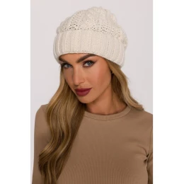 M897 Pletená káblová čiapka - ecru