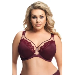 Senzačná, veľmi pohodlná podprsenka Luisse K441 v novej elegantnej bordovej farbe. Mäkký typ, s kosticami. Ideálne pre stredné a väčšie prsia. Veľmi pekne zdobí telo, najmä vďaka jemnej čipke v duete s ľahkým tylom. Veľkou výhodou podprsenky sú predĺžené ramienka, ktoré zabezpečujú pohodlie pri nosení. Ich šírka závisí od veľkosti. Vďaka tomu sa prsia dokonale stlačia dovnútra, zdvihnú a zachovajú si krásny, zaoblený tvar.