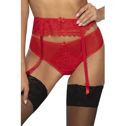 Podväzkový pás značky Mat, model 0198/3 Estelle. Výrobok je vyrobený z 90 % polyamidu, 10 % elastanu. Miesto zapínania: vzadu. Zapínanie na háčik a oko. Podväzkový pás s ramienkami. Dámsky výrobok. Ramienka sú nastaviteľné.