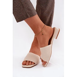 Materiálové dámské pantofle na nízkém podpatku Světle béžové Belissea