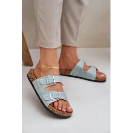 Materiałowe Klapki Na Korkowej Podeszwie Z Klamrami Miętowe Atera