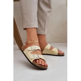 Materiałowe Klapki Na Korkowej Podeszwie Z Klamrami Żółte Atera