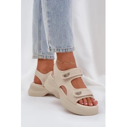 Materiałowe Lekkie Sandały Na Platformie Jasnobeżowe Deniffia