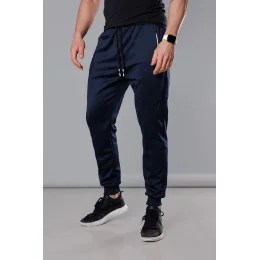 Tmavomodré pánske teplákové nohavice so sťahovacími lemami (8K167)