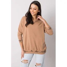 Mikina v ťavej farbe s nápisom na leme. 3/4 rukávy.