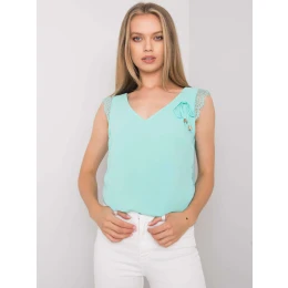 Top v mätovej farbe s čipkovými vsadkami .