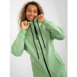 Svetlozelená dlhá základná mikina na zips s vreckami RUE PARIS .