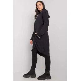 Dámska mikina s predĺženým strihom a dlhými rukávmi. Mikina má asymetrickú spodnú časť, zapínanie na zips a kapucňu. Vrecká na zips po stranách.