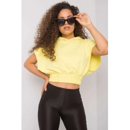 Dámska mikina voľného strihu s krátkymi rukávmi a kapucňou. Široký elastický pás v spodnej časti.
