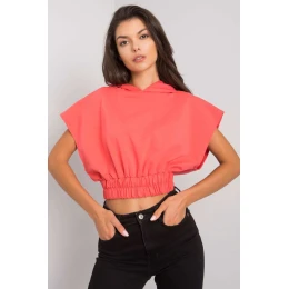 Dámska mikina voľného strihu s krátkymi rukávmi a kapucňou. Široký elastický pás v spodnej časti.