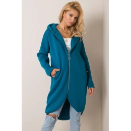 Mikina s predĺženým strihom a zapínaním na zips. Mikina s dlhým rukávom a kapucňou. Vrecká na bokoch.