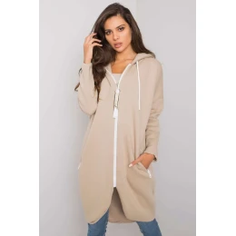 Dámska mikina s kapucňou s predĺženým strihom, dlhými rukávmi a kapucňou. Mikina sa zapína na zips a na bokoch má vrecká na zips.