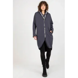 Dámska mikina s predĺženým strihom, dlhými rukávmi a kapucňou. Mikina sa zapína na zips a po stranách má vrecká na zips.