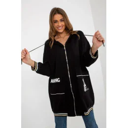 Dámska mikina predĺženého strihu s dlhými rukávmi a kapucňou. Mikina má zapínanie na zips a veľké nakladané vrecká na prednej strane.