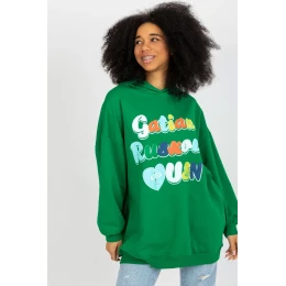Dámska mikina rovného strihu s dlhými rukávmi a kapucňou. Vrecká na bokoch. Ozdobný nápis na prednej strane.